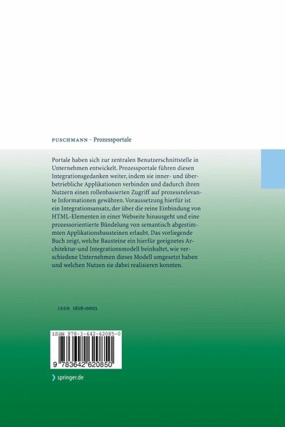Portale haben sich zur zentralen Benutzerschnittstelle in Unternehmen entwickelt. Prozessportale führen diesen Integrationsgedanken weiter, indem sie inner- und überbetriebliche Applikationen verbinden und dadurch ihren Nutzern einen rollenbasierten Zugriff auf prozessrelevante Informationen gewähren. Voraussetzung hierfür ist ein Integrationsansatz, der über die reine Einbindung von HTML-Elementen in einer Webseite hinausgeht und eine prozessorientierte Bündelung von semantisch abgestimmten Applikationsbausteinen erlaubt. Das Buch zeigt, welche Bausteine ein hierfür geeignetes Architektur- und Integrationsmodell beinhaltet, wie verschiedene Unternehmen dieses Modell umgesetzt haben und welchen Nutzen sie dabei realisieren konnten.