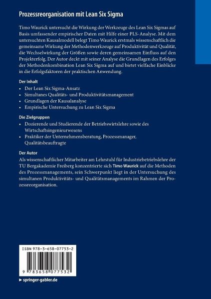 Timo Waurick untersucht die Wirkung der Werkzeuge des Lean Six Sigmas auf Basis umfassender empirischer Daten mit Hilfe einer PLS-Analyse. Mit dem untersuchten Kausalmodell belegt Timo Waurick erstmals wissenschaftlich die gemeinsame Wirkung der Methodenwerkzeuge auf Produktivität und Qualität, die Wechselwirkung der Größen sowie deren gemeinsamen Einfluss auf den Projekterfolg. Der Autor deckt mit seiner Analyse die Grundlagen des Erfolges der Methodenkombination Lean Six Sigma auf und bietet vielfache Einblicke in die Erfolgsfaktoren der praktischen Anwendung.