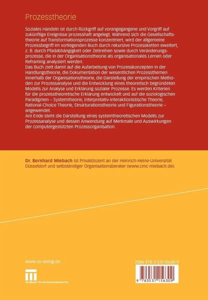 Das Buch zielt damit auf die Aufarbeitung von Prozesskonzepten in der Handlungstheorie, die Dokumentation der wesentlichen Prozessthemen innerhalb der Organisationstheorie, die Darstellung der empirischen Methoden zur Prozessanalyse und die Entwicklung eines theoretisch begründeten Modells zur Analyse und Erklärung sozialer Prozesse. Es werden Kriterien für die prozesstheoretische Erklärung entwickelt und auf die soziologischen Paradigmen - Systemtheorie, interpretativ-interaktionistische Theorie, Rational-Choice Theorie, Strukturationstheorie und Figurationstheorie - angewendet.
