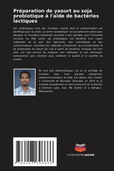 Les probiotiques sont des microbes vivants dont la consommation est bénéfique pour la santé. Le terme "probiotique" est actuellement utilisé pour désigner la microflore intestinale associée à des bienfaits pour l'immunité humaine. Au XXIe siècle, les probiotiques ont bénéficié d'un regain d'attention de la part des fabricants, des scientifiques et des consommateurs. Connaître les méthodes d'isolement, de caractérisation et de préparation du yaourt de soja à partir de bactéries lactiques est très utile, car cela permet de proposer des méthodes et des techniques comparatives plus récentes pour améliorer la qualité et la quantité du produit.