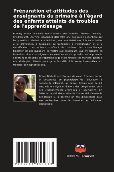 Primary School Teachers Preparedness and Attitudes Towards Teaching Children with Learning Disabilities (LD) offre une explication essentielle sur les questions relatives à la définition, aux caractéristiques, à la comorbidité, à la prévalence, à l'étiologie, au traitement, à l'identification et à la classification des enfants souffrant de troubles de l'apprentissage. L'examen de ces questions permettra aux éducateurs, aux enseignants en formation et aux enseignants en exercice de comprendre les apprenants souffrant de troubles de l'apprentissage et de réfléchir de manière générale aux stratégies utilisées pour gérer les difficultés souvent associées aux troubles de l'apprentissage.