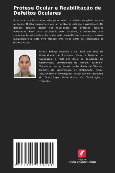 A perda ou ausência de um olho pode causar um defeito congénito, trauma ou tumor. O olho anoptálmico cria um problema estético e psicológico. Os defeitos oculares podem ser reabilitados com próteses oculares adequadas. Para uma reabilitação bem sucedida, é necessária uma comunicação adequada entre o cirurgião oculoplástico e a prótese maxilo-facial/ocularista. Este livro fornece uma visão geral da reabilitação da prótese ocular.