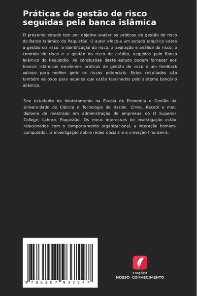 O presente estudo tem por objetivo avaliar as práticas de gestão do risco do Banco Islâmico do Paquistão. O autor efectua um estudo empírico sobre a gestão do risco, a identificação do risco, a avaliação e análise do risco, o controlo do risco e a gestão do risco de crédito, seguidos pelo Banco Islâmico do Paquistão. As conclusões deste estudo podem fornecer aos bancos islâmicos excelentes práticas de gestão do risco e um feedback valioso para melhor gerir os riscos potenciais. Estes resultados são também valiosos para aqueles que estão fascinados pelo sistema bancário islâmico.