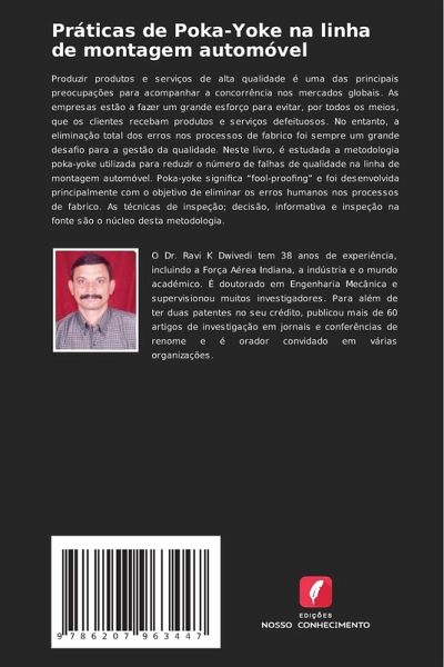 Produzir produtos e serviços de alta qualidade é uma das principais preocupações para acompanhar a concorrência nos mercados globais. As empresas estão a fazer um grande esforço para evitar, por todos os meios, que os clientes recebam produtos e serviços defeituosos. No entanto, a eliminação total dos erros nos processos de fabrico foi sempre um grande desafio para a gestão da qualidade. Neste livro, é estudada a metodologia poka-yoke utilizada para reduzir o número de falhas de qualidade na linha de montagem automóvel. Poka-yoke significa ¿fool-proofing¿ e foi desenvolvida principalmente com o objetivo de eliminar os erros humanos nos processos de fabrico. As técnicas de inspeção; decisão, informativa e inspeção na fonte são o núcleo desta metodologia.