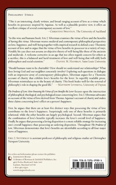 The Prudence of Love focuses upon the intersection of philosophical, theological, and psychological issues related to love. Eric Silverman defends an account of love derived from the views of Thomas Aquinas and argues that love provides numerous psychological and relational benefits that increase the lover's happiness. Furthermore, he argues that love is beneficial according to all major contemporary accounts of happiness.