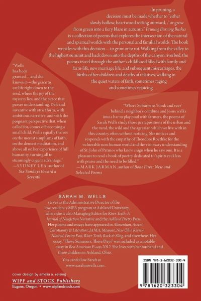 In pruning, a decision must be made whether to "either slowly hollow, heartwood rotting outward, / or grow from green into a fiery blaze in autumn." Pruning Burning Bushes is a collection of poems that explores the intersection of the natural and spiritual worlds with the personal and familial worlds. The book wrestles with this decision--to grow or to rot. Walking from the valley to the highest summit and back down into the depths of the canyon riverbed, the poems travel through the author's childhood filled with family and farm life, new marriage life, and subsequent miscarriages, the births of her children and deaths of relatives, and walking in the quiet waters of faith, sometimes raging and sometimes rejoicing.