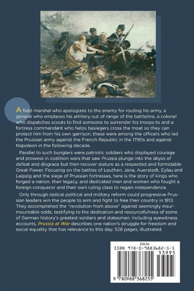 Prussia fought its way from vassal province to European Great Power thanks to prudent diplomacy, resolute leadership and an army unrivaled in discipline, training and tactics. Drawing from 18th and 19th-Century publications, eyewitness accounts, surviving military records and contemporary studies, Prussia at War traces the evolution of the nation from its rise under Grand Elector Friedrich Wilhelm to the wars against Napoleon over 150 years later. The battles of Rossbach, Leuthen, Jena, Auerstedt, Eylau and Leipzig, together with the defense of Prussian fortresses in 1806/07, bear witness to the courage, prowess and tenacity of the Prussian soldier in combat and the crucial influence of command on the outcome of engagements. Within the kingdom, reformers waged a persistent struggle against absolutism, aristocratic privilege and class distinctions to promote an enlightened society and create a citizen's army. Illuminating facts about the Prussian hierarchy round out this literary portrait of a renowned kingdom and the men and women who crafted it. 528 pages, illustrated.
