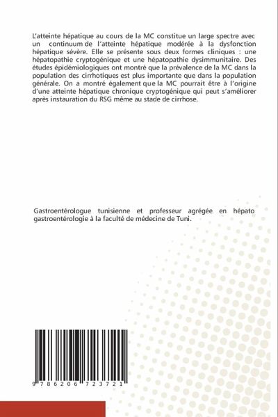 L'atteinte hépatique au cours de la MC constitue un large spectre avec un continuum de l'atteinte hépatique modérée à la dysfonction hépatique sévère. Elle se présente sous deux formes cliniques : une hépatopathie cryptogénique et une hépatopathie dysimmunitaire. Des études épidémiologiques ont montré que la prévalence de la MC dans la population des cirrhotiques est plus importante que dans la population générale. On a montré également que la MC pourrait être à l'origine d'une atteinte hépatique chronique cryptogénique qui peut s'améliorer après instauration du RSG même au stade de cirrhose.
