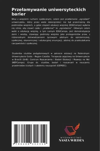 Wraz z wiejskimi ruchami spo¿ecznymi, celem jest prze¿amanie ¿ogrodze¿¿ uniwersytetu, który przez wiele dziesi¿cioleci nie by¿ przestrzeni¿ dla podmiotów wiejskich, a gdzie stopie¿ edukacji wiejskiej (EDUCampo) wy¿ania si¿ silnie, aby stawi¿ czo¿a i ¿prze¿amä¿ te ¿ogrodzeniä. G¿ównym celem walki o edukacj¿ wiejsk¿, a tym samym EDUCampo, jest demokratyzacja ziemi i wiedzy, stawiaj¿c podmioty wiejskie jako protagonistów praw, z ró¿norodnymi do¿wiadczeniami ¿yciowymi zdolnymi do epistemicznej, spo¿ecznej, ekonomicznej i edukacyjnej enuncjacji, zdolnej do przeksztäcania rzeczywisto¿ci spo¿ecznej.