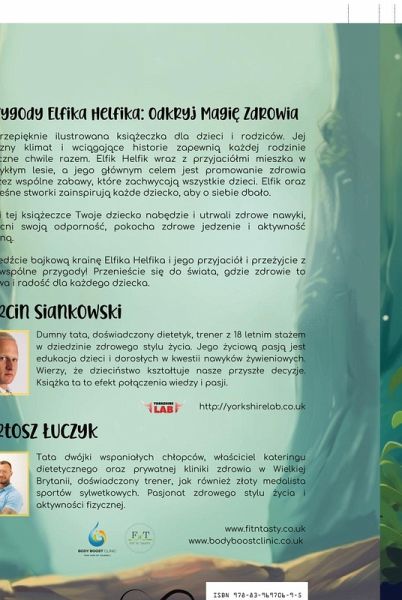 Przygody Elfika Helfika: Odkryj Magi¿ Zdrowia to przepi¿knie ilustrowana ksi¿¿eczka dla dzieci i rodziców. Jej Bajeczny klimat i wci¿gaj¿ce historie zapewni¿ kädej rodzinie magiczne chwile razem.¿ Elfik Helfik wraz z przyjació¿mi mieszka w niezwyk¿ym lesie, a jego g¿ównym celem jest promowanie zdrowia poprzez wspólne zabawy, które zachwycaj¿ wszystkie dzieci. Elfik i jego przyjaciele zainspiruj¿ käde dziecko, aby dbäo o zdrowie. Dzi¿ki tej ksi¿¿eczce Twoje dziecko nab¿dzie i utrwali zdrowe nawyki, wzmocni swoj¿ odpornö¿, pokocha zdrowe jedzenie i aktywnö¿ fizyczn¿ i zadba o zdrowie mentalne. Odwied¿cie bajkow¿ krain¿ Elfika Helfika i jego przyjació¿ i prze¿yjcie z nimi wspólne przygody! Zapraszamy! Przenie¿ si¿ do ¿wiata, gdzie zdrowie to zabawa i radö¿ dla kädego dziecka.