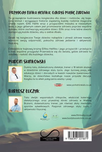 Przygody Elfika Helfika: Odkryj Magi¿ Zdrowia to przepi¿knie ilustrowana ksi¿¿eczka dla dzieci i rodziców. Jej Bajeczny klimat i wci¿gaj¿ce historie zapewni¿ kädej rodzinie magiczne chwile razem.¿ Elfik Helfik wraz z przyjació¿mi mieszka w niezwyk¿ym lesie, a jego g¿ównym celem jest promowanie zdrowia poprzez wspólne zabawy, które zachwycaj¿ wszystkie dzieci. Elfik i jego przyjaciele zainspiruj¿ käde dziecko, aby dbäo o zdrowie. Dzi¿ki tej ksi¿¿eczce Twoje dziecko nab¿dzie i utrwali zdrowe nawyki, wzmocni swoj¿ odpornö¿, pokocha zdrowe jedzenie i aktywnö¿ fizyczn¿ i zadba o zdrowie mentalne. Odwied¿cie bajkow¿ krain¿ Elfika Helfika i jego przyjació¿ i prze¿yjcie z nimi wspólne przygody! Zapraszamy! Przenie¿ si¿ do ¿wiata, gdzie zdrowie to zabawa i radö¿ dla kädego dziecka.