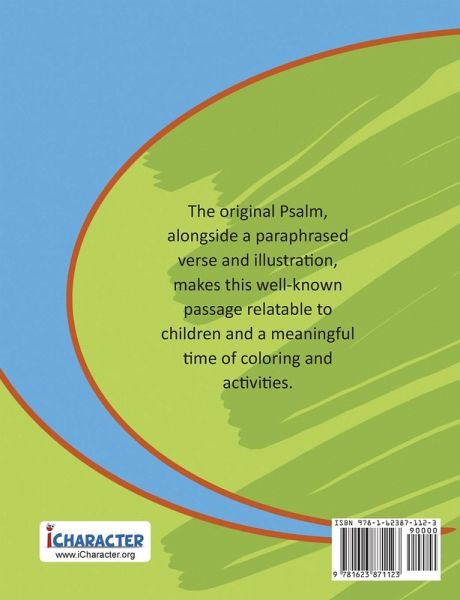 The original Psalm, alongside a paraphrased verse and illustration, makes this well-known passage relatable to children and a meaningful time of coloring and activities. Includes 30 pages of coloring and activities. For more kids products, visit our website at www.icharacter.org
