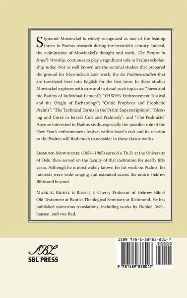 Sigmund Mowinckel is widely recognized as one of the leading forces in Psalms research during the twentieth century. His six Psalmenstudien are translated here in two volumes into English for the first time. Anyone interested in Psalms study, especially the possible role of the New Years enthronement festival within Israels cult and its relation to the Psalter, will find much to consider in these classic works.