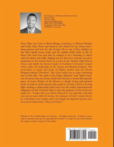 This is a book of devotion and is filled with love and praise. The Goal of this book is to not only present a understanding of the relationship with God, but to also challenge some of the misconceptions that many people have in reference to the Love and interactions of God. It is very powerful and filled with joy.