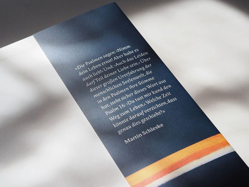 Martin Schleske sagt: »Wenn wir sie nicht kennen, können wir die Augen schließen, und bitten, dass wir unseren Psalm gezeigt bekommen. Und mitunter werden wir uns wundern, wie treffsicher uns ein Begleiter zur Seite steht. Wir können sie bitten wie Boten, die uns etwas sagen sollen, wie hilfreiche Freundinnen, Freunde, heilsame Meister, wir können still in ihrer Weisheit werden, ihnen erlauben unserem Seelenleben Nahrung zu sein. Die Psalmen sagen: 'Nimm dein Leben ernst! Aber habe es auch lieb!' Und: Auch das Leiden darf Teil deiner Liebe sein. Über dieser großen Urerfahrung der menschlichen Seelenwelt, die in den Psalmen ihre Stimme hat, steht sicher dieses Wort aus Psalm 16: Du tust mir kund den Weg zum Leben. Welche Zeit könnte darauf verzichten, dass genau dies geschieht?«