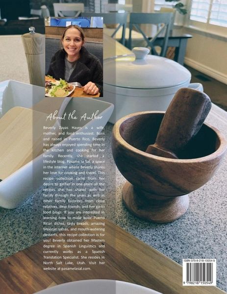 Pásame la Sal is a collection of family recipes that have been perfected over time and influenced by Puerto Rican, Mexican, American, Spanish, and Argentinian cuisines. It is a project that, as Beverly's husband puts it, was "born from the heart and directed primarily to our family-who has been the main beneficiary of her passion, skill, and relentless work to compile all the recipes we have come to love." Beverly is extremely grateful to be able to share her love for food with you and your family. There's nothing better than gathering around the table with the people who've been by your side all along. The memories that are created while enjoying yummy food and great company are priceless, and they'll not only nourish your body, but also your soul.