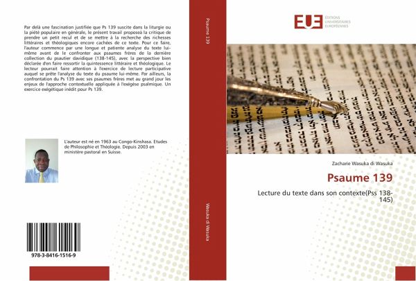 Par delà une fascination justifiée que Ps 139 suscite dans la liturgie ou la piété populaire en générale, le présent travail proposeà la critique de prendre un petit recul et de se mettre à la recherche des richesses littéraires et théologiques encore cachées de ce texte. Pour ce faire, l'auteur commence par une longue et patiente analyse du texte lui-même avant de le confronter aux psaumes frères de la dernière collection du psautier davidique (138-145), avec la perspective bien déclarée d'en faire ressortir la quintessence littéraire et théologique. Le lecteur pourrait faire attention à l'exercice de lecture participative auquel se prête l'analyse du texte du psaume lui-même. Par ailleurs, la confrontation du Ps 139 avec ses psaumes frères met au grand jour les enjeux de l'approche contextuelle appliquée à l'exégèse psalmique. Un exercice exégétique inédit pour Ps 139.