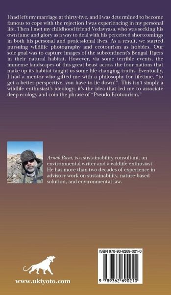 I had left my marriage at thirty-five, and I was determined to become famous to cope with the rejection I was experiencing in my personal life. Then I met my childhood friend Vedavyasa, who was seeking his own fame and glory as a way to deal with his perceived shortcomings in both his personal and professional lives. As a result, we started pursuing wildlife photography and ecotourism as hobbies. Our sole goal was to capture images of the subcontinent's Bengal Tigers in their natural habitat. However, via some terrible events, the immense landscapes of this great beast across the four nations that make up its habitat taught us some life-changing truths. Eventually, I had a mentor who gifted me with a philosophy for lifetime, "to get a better perspective, you have to lie down!". This isn't simply a wildlife enthusiast's ideology; it's the idea that led me to associate deep ecology and coin the phrase of "Pseudo Ecotourism."