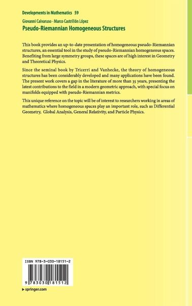 This book provides an up-to-date presentation of homogeneous pseudo-Riemannian structures, an essential tool in the study of pseudo-Riemannian homogeneous spaces. Benefiting from large symmetry groups, these spaces are of high interest in Geometry and Theoretical Physics.