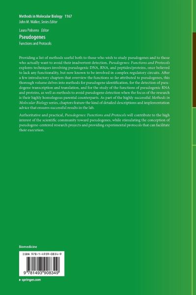 Authoritative and practical, Pseudogenes: Functions and Protocols will contribute to the high interest of the scientific community toward pseudogenes, while stimulating the conception of pseudogene - centered research projects and providing experimental protocols that can facilitate their execution.