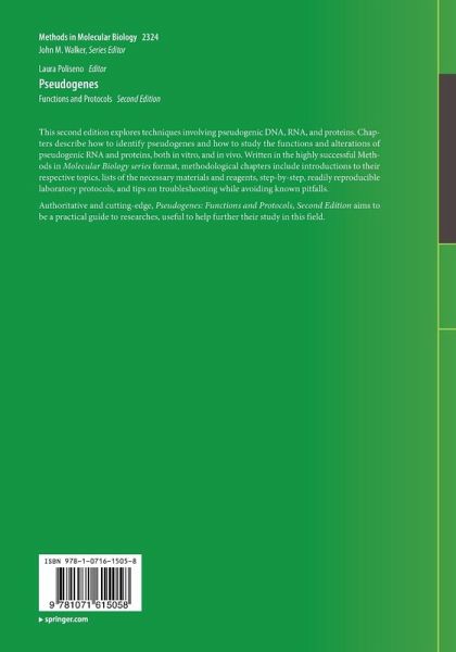 Pseudogenes: Four Decades of Discovery.- Methods to Identify and Study the Evolution of Pseudogenes using a Phylogenetic Approach.- Computational Methods For Pseudogene Annotation Based on Sequence Homology.- A Methodology to Study pseudogenized lincRNAs.- GENCODE Pseudogenes.- Comprehensive Detection of Pseudogenes Transcribed by Readthrough.- Mathematical modeling of ceRNA-based interactions.- Pseudogenes as Competitive Endogenous RNAs: Target Prediction and Validation.- Pseudogenes as Competitive Endogenous RNAs: Testing miRNA Dependency.- An Overview of the Computational Models Dealing with the Regulatory ceRNA Mechanism and ceRNA Deregulation in Cancer.- Studying the Oncosuppressive Functions of PTENP1 as a ceRNA.- Methods to Study Protein-Binding to Pseudogene Transcript.- Chromatin Regulation at Parental Gene Promoters by Pseudogene Sense lncRNAs.- Pseudogenes: A Novel Source of Trans Acting Antisense RNAs.- Methods to Study Translated Pseudogenes: Recombinant Expression and Complementation, Targeted Proteomics and RNA Profiling.- A Restriction Endonuclease-Based Assay to distinguish NANOGP8 Retrogene from Parental NANOG.- CRISPR/Cas Technologies Applied to Pseudogenes.- Strategies to Study the Functions of Pseudogenes in Mouse Models of Cancer.- Pseudogene Profiling For Cancer Subtype Classification.- Pseudogenes as Biomarkers and Therapeutic Targets in Human Cancers.- Methods for the Detection of Circulating Pseudogenes and their use as Cancer Biomarker.- Dealing with Pseudogenes in Molecular Diagnostics in the Next Generation Sequencing Era.