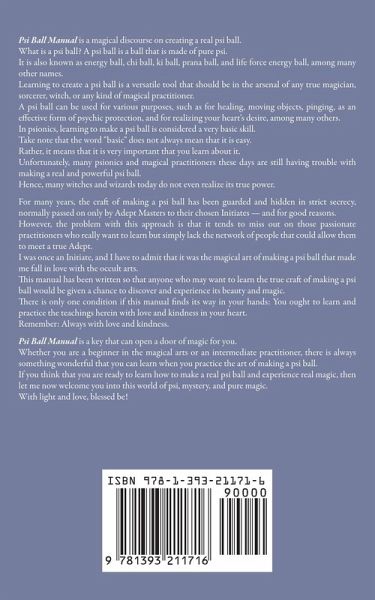 Psi Ball Manual is a magical discourse on creating a real psi ball. What is a psi ball? A psi ball is a ball that is made of pure psi. It is also known as energy ball, chi ball, ki ball, prana ball, and life force energy ball, among many other names. Learning to create a psi ball is a versatile tool that should be in the arsenal of any true magician, sorcerer, witch, or any kind of magical practitioner. A psi ball can be used for various purposes, such as for healing, moving objects, pinging, as an effective form of psychic protection, and for realizing your heart's desire, among many others. In psionics, learning to make a psi ball is considered a very basic skill. Take note that the word "basic" does not always mean that it is easy. Rather, it means that it is very important that you learn about it. Unfortunately, many psionics and magical practitioners these days are still having trouble with making a real and powerful psi ball. Hence, many witches and wizards today do not even realize its true power. For many years, the craft of making a psi ball has been guarded and hidden in strict secrecy, normally passed on only by Adept Masters to their chosen Initiates — and for good reasons. However, the problem with this approach is that it tends to miss out on those passionate practitioners who really want to learn but simply lack the network of people that could allow them to meet a true Adept. I was once an Initiate, and I have to admit that it was the magical art of making a psi ball that made me fall in love with the occult arts. This manual has been written so that anyone who may want to learn the true craft of making a psi ball would be given a chance to discover and experience its beauty and magic. There is only one condition if this manual finds its way in your hands: You ought to learn and practice the teachings herein with love and kindness in your heart. Remember: Always with love and kindness. Psi Ball Manual is a key that can open a door of magic for you. Whether you are a beginner in the magical arts or an intermediate practitioner, there is always something wonderful that you can learn when you practice the art of making a psi ball. If you think that you are ready to learn how to make a real psi ball and experience real magic, then let me now welcome you into this world of psi, mystery, and pure magic. With light and love, blessed be!