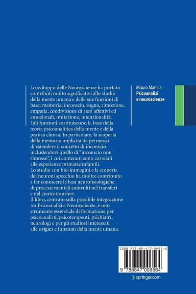 Il libro, centrato sulla possibile integrazione tra Psicoanalisi e Neuroscienze, è uno strumento essenziale di formazione per psicoanalisti, psicoterapeuti, psichiatri, neurologi e per gli studiosi interessati alle origini efunzioni della mente umana.
