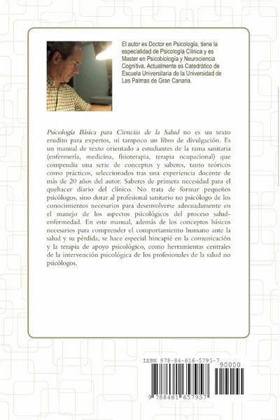 Psicología Básica para Ciencias de la Salud no es un texto erudito para expertos, ni tampoco un libro de divulgación. Es un manual de texto orientado a estudiantes de la rama sanitaria (enfermería, medicina, fisioterapia, terapia ocupacional) que compendia una serie de conceptos y saberes, tanto teóricos como prácticos, seleccionados tras una experiencia docente de más de 20 años del autor. Saberes de primera necesidad para el quehacer diario del clínico. No trata de formar pequeños psicólogos, sino dotar al profesional sanitario no psicólogo de los conocimientos necesarios para desenvolverse adecuadamente en el manejo de los aspectos psicológicos del proceso salud- enfermedad. En este manual, además de los conceptos básicos necesarios para comprender el comportamiento humano ante la salud y su pérdida, se hace especial hincapié en la comunicación y la terapia de apoyo psicológico, como herramientas centrales de la intervención psicológica de los profesionales de la salud no psicólogos.