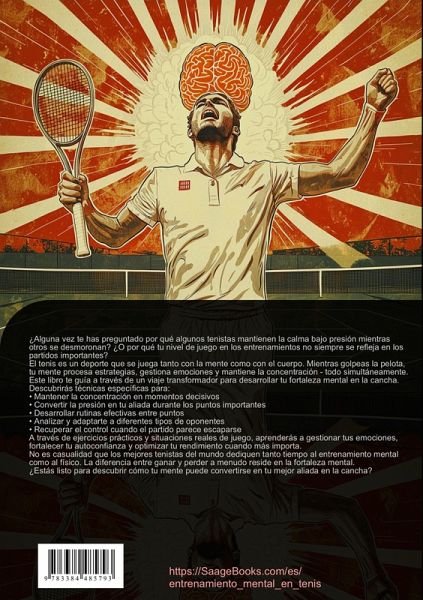 Descubre cómo mejorar significativamente tu rendimiento en el tenis a través del entrenamiento mental con esta guía práctica y detallada.La psicología tenis es un aspecto fundamental que diferencia a los jugadores buenos de los sobresalientes. Este libro de tenis te ofrece herramientas concretas para desarrollar una mentalidad ganadora en la cancha, abordando aspectos esenciales como la concentración, el manejo de emociones y la autoconfianza.Aprenderás:- Técnicas específicas para mantener el foco durante puntos cruciales- Estrategias para desarrollar rutinas efectivas entre puntos- Métodos de visualización para anticipar y responder mejor en el juego- Herramientas para construir y mantener la confianza en momentos decisivosEl entrenamiento de tenis va más allá de la técnica y la táctica. Este libro profundiza en:- La preparación mental para competencias- El manejo de situaciones de presión- El desarrollo de una mentalidad resiliente- Técnicas de activación y relajación según lasnecesidades del momentoCada capítulo incluye ejercicios prácticos y ejemplos reales que puedes aplicar inmediatamente en tu juego. Aprenderás a:- Analizar diferentes tipos de adversarios- Mantener el control en momentos críticos- Desarrollar estrategias efectivas para tie-breaks- Optimizar tu rendimiento en entrenamientos y partidosEste libro de tenis está diseñado tanto para jugadores recreativos como competitivos que buscan mejorar su juego mental y alcanzar un nivel superior en la cancha.Este libro ha sido creado utilizando tecnologías innovadoras como la Inteligencia Artificial y herramientas especialmente desarrolladas, por ejemplo, en la búsqueda de ideas, la investigación, la escritura, la edición, el control de calidad y el diseño de ilustraciones decorativas.De esta manera, queremos ofrecerle una experiencia de lectura especialmente coherente, moderna y de mayor calidad.