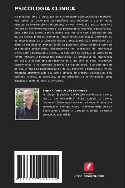 Na presente obra é efectuada uma abordagem psicoterapêutica moderna, valorizando os postulados psicanalíticos que reforçam e apoiam estas técnicas de intervenção ou tratamento a nível individual e grupal; este livro fornece os elementos essenciais das psicoterapias dinâmica e psicanalítica, úteis para estudantes e profissionais que intervêm com pacientes na sua prática clínica. Entre os elementos fundamentais compilados encontram-se os antecedentes da psicoterapia desde a antiguidade até à atualidade, para além de destacar os avanços tanto da psicologia clínica dinâmica como da psicoterapia psicanalítica; Descrevem-se os processos de intervenção clínica com a psicoterapia breve, a psicoterapia de apoio, a psicoterapia de tempo limitado, a psicoterapia psicanalítica, os processos de intervenção em crise, a psicoterapia psicanalítica de grupo com os seus respectivos componentes, a psicoterapia centrada na transferência, a psicoterapia do perdão, a figura do psicoterapeuta e do seu paciente, a psicoterapia no seu momento oportuno; tudo isto com o objetivo de procurar soluções para os conflitos ligeiros, as neuroses, as perturbações da personalidade, tanto individuais como de casal e familiares.