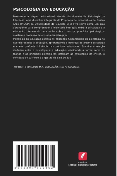 Bem-vindo à viagem educacional através do domínio da Psicologia da Educação, uma disciplina integrante do Programa de Licenciatura de Quatro Anos (FYUGP) da Universidade de Gauhati. Este livro serve como um guia abrangente para compreender a intrincada interação entre a psicologia e a educação, oferecendo uma visão sobre como os princípios psicológicos moldam o processo de ensino-aprendizagem.Psicologia da Educação explora os conceitos fundamentais da psicologia no que diz respeito à educação, aprofundando a natureza da própria psicologia e a sua profunda influência nas práticas educativas. Examina a relação dinâmica entre a psicologia e a educação, elucidando a forma como as teorias e os princípios psicológicos informam as estratégias de ensino, a conceção do currículo e a gestão da sala de aula.