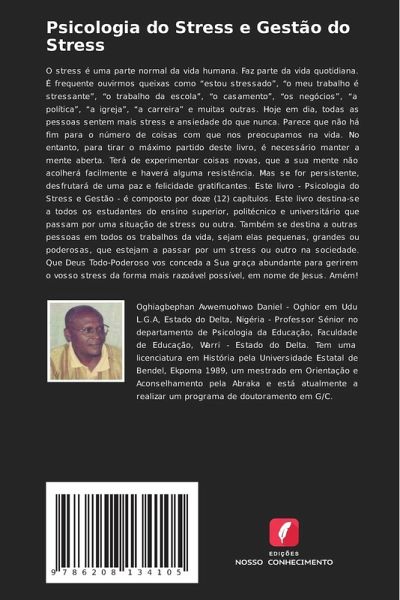 O stress é uma parte normal da vida humana. Faz parte da vida quotidiana. É frequente ouvirmos queixas como "estou stressado", "o meu trabalho é stressante", "o trabalho da escola", "o casamento", "os negócios", "a política", "a igreja", "a carreira" e muitas outras. Hoje em dia, todas as pessoas sentem mais stress e ansiedade do que nunca. Parece que não há fim para o número de coisas com que nos preocupamos na vida. No entanto, para tirar o máximo partido deste livro, é necessário manter a mente aberta. Terá de experimentar coisas novas, que a sua mente não acolherá facilmente e haverá alguma resistência. Mas se for persistente, desfrutará de uma paz e felicidade gratificantes. Este livro - Psicologia do Stress e Gestão - é composto por doze (12) capítulos. Este livro destina-se a todos os estudantes do ensino superior, politécnico e universitário que passam por uma situação de stress ou outra. Também se destina a outras pessoas em todos os trabalhos da vida, sejam elas pequenas, grandes ou poderosas, que estejam a passar por um stress ou outro na sociedade. Que Deus Todo-Poderoso vos conceda a Sua graça abundante para gerirem o vosso stress da forma mais razoável possível, em nome de Jesus. Amém!