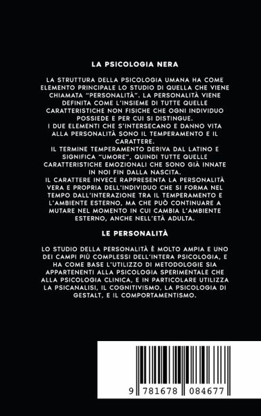 Parli con te stesso allo specchio solo per vedere come appari quando parli con gli altri? Almeno una volta hai cercato di manipolare qualcuno per poi fargli fare ciò che volevi ? A volte compiamo azioni bizzarre che ci fanno pensare: "Per quale motivo mi sono comportato così?". In effetti c'è sempre una logica dietro le nostre azioni ma a volte bisogna cercarla nelle aree più recondite della nostra mente. Aspetta però, non preoccuparti! Se sei arrivato fin qui è perché le innumerevoli scelte che hai fatto nella tua vita ti hanno portato qui a leggere questa descrizione. Se domande del tipo "perché mi sono comportato in un certo modo" oppure "che significato ha in maniera subconscia la frase che ha detto quella persona" allora sei nei posto giusto. Devi sapere che dietro ogni nostro comportamento c'è una motivazione molto più ampia. Nonostante il nostro impegno giornaliero per conoscere noi stessi e gli altri, spesso riusciamo a capire davvero poco. Questo accade perché la mente umana è molto complessa. Questo libro ti aiuterà a scoprire tutte le tecniche necessarie per comprendere la mente umana e iniziare a dirottare la mente degli altri. Imparerai i metodi usati dai migliori marketing manager di tutto il mondo, ogni giorno veniamo manipolati sui social dai mass media e da tante altre persone senza accorgercene. All'interno di "Manuale di Psicologia Nera", andremo a studiare tutte le parti più celate della psicologia per iniziare da subito a dare un senso a tutto ciò che ci circonda senza più navigare in giornate piene di eventi a cui non riusciamo a dare un senso o, peggio ancora, a cui attribuiamo un significato errato. Dare un significato errato agli eventi comprometterà il nostro modo di pensare e le nostre logiche. Questo ci porterà a prendere decisione errate e a ritrovarci in situazioni spesso poco gradevoli. Se vuoi smettere di essere manipolato e iniziare a muovere le pedine del gioco allora ti trovi nel posto giusto!! Ecco solo un assaggio di ciò che scoprirai: ¿La psicologia umana ¿La Triade Oscura ¿I tre strati della mente umana e come sfruttarli ¿Le regole alla base della manipolazione e della persuasione ¿Le basi dell'ipnosi e come sfruttarla a proprio favore ¿Due tecniche base dell'autoipnosi, come utilizzarle! ¿Linguaggio del corpo e PNL ¿Come sfruttare la PNL per combattere l'ansia lo stress e la depressione ¿e molto altro ancora Acquista Adesso, per imparare a dirottare la mente degli altri