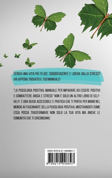 Cerchi una vita più felice, soddisfacente e libera dallo stress? Hai appena trovato il tuo manuale! "La Psicologia Positiva: Manuale per Imparare ad Essere Positivi e Combattere Ansia e Stress" non è solo un altro libro di self help. È una guida accessibile e pratica che ti porta per mano nel mondo affascinante della psicologia positiva, mostrandoti come essa possa trasformare non solo la tua vita ma anche le comunità che ti circondano.