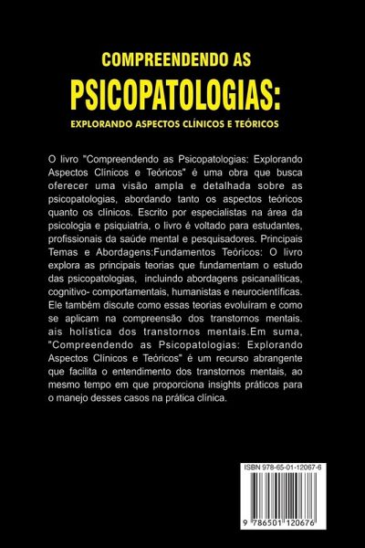 O livro Compreendendo as Psicopatologias: Explorando Aspectos Clínicos e Teóricos é uma obra que busca oferecer uma visão ampla e detalhada sobre as