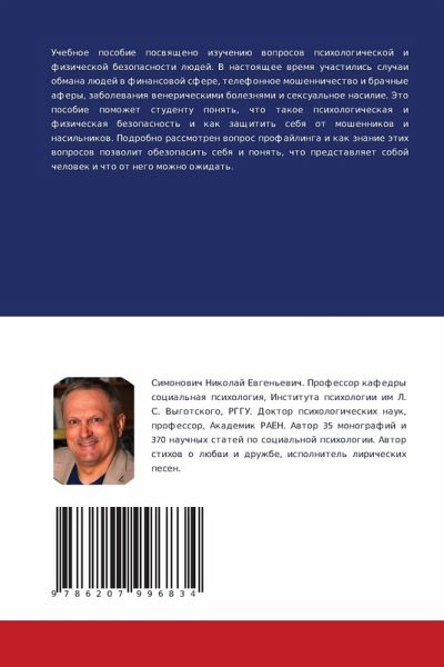 Uchebnoe posobie poswqscheno izucheniü woprosow psihologicheskoj i fizicheskoj bezopasnosti lüdej. V nastoqschee wremq uchastilis' sluchai obmana lüdej w finansowoj sfere, telefonnoe moshennichestwo i brachnye afery, zabolewaniq wenericheskimi boleznqmi i sexual'noe nasilie. Jeto posobie pomozhet studentu ponqt', chto takoe psihologicheskaq i fizicheskaq bezopasnost' i kak zaschitit' sebq ot moshennikow i nasil'nikow. Podrobno rassmotren wopros profajlinga i kak znanie ätih woprosow pozwolit obezopasit' sebq i ponqt', chto predstawlqet soboj chelowek i chto ot nego mozhno ozhidat'.