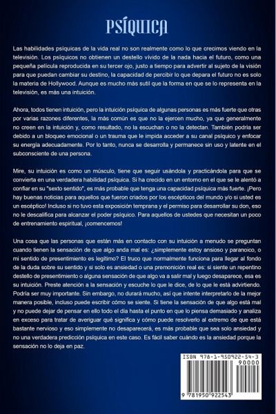 Si siempre ha estado interesado en descubrir cómo desarrollar sus habilidades psíquicas, entonces siga leyendo... Tal vez le apasiona perfeccionar sus habilidades psíquicas ya existentes, pero no sabe por dónde empezar. Tal vez siempre ha sido relativamente escéptico acerca de la existencia de habilidades psíquicas, pero intrigado por la posibilidad de su existencia. Tal vez no tenga expectativas de una u otra manera, pero tiene curiosidad por saber de qué se trata este libro y el camino de un psíquico. Sea cual sea el motivo de su interés, no busque más: ha encontrado la guía esencial para el desarrollo psíquico para principiantes. En este libro, usted: Descubrirá cómo desarrollar sus habilidades psíquicas. Aprenderá lo que significa ser clarividente, clarisintiente, clariaudiente y clariconsciente. Obtendrá consejos sobre cómo mantenerse seguro y protegido de entidades negativas y de personas que desean hacerle daño mientras realiza proezas psíquicas. Aprenderá todo sobre la curación psíquica: cómo usar la energía y la clarividencia para ayudar a otros en su viaje de sanación. Descubrirá las maravillas de la meditación guiada y cómo ayuda a su mente a fortalecerse y prepararse para las lecturas psíquicas. Aprenderá cómo averiguar si el aura de su amigo es naranja, verde o roja, junto con la forma de captar la energía del aura de una persona. Descubrirá la telepatía y cómo enviar imágenes psíquicas a sus amigos, o averiguar qué siente realmente alguien. Descubrirá cómo puede conectarse con sus Guías espirituales (también conocidos como Ángeles Guardianes) y pedirles ayuda. Aprenderá cómo conectarse con el mundo de los espíritus y cómo se puede hablar con los seres queridos muertos al convertirse en un médium. ¡Y mucho, mucho más! ¡Obtenga este libro ahora para aprender más sobre la psíquica!