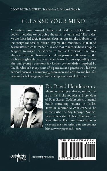 As society moves toward cleaner and healthier choices for our bodies, shouldn't we be doing the same for our minds? Every day, we are force-fed toxic messages, clogging our minds, robbing us of the energy we need to remain inspired and motivated. Your mind deserves better. PSYCHED 31 is a one-month mental detox uniquely designed to inspire participants to face and overcome the daily obstacles that stand between us and our personal fulfillment in life. Each writing builds on the last, complete with a corresponding short film and prompt questions for further contemplation inspired by Dr. Henderson's many years of experience as a psychiatrist, his own personal success in overcoming depression and anxiety, and his life's passion for helping people find redemption beyond their pain.