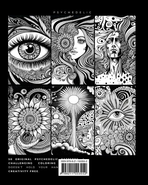 50 Original psychedelic Patterns. A challenging coloring book that doesn't hold your hand. Set your creativity free. - 50 Unique Designs - Single-Sided Pages - Framed Images - Hours of Fun!