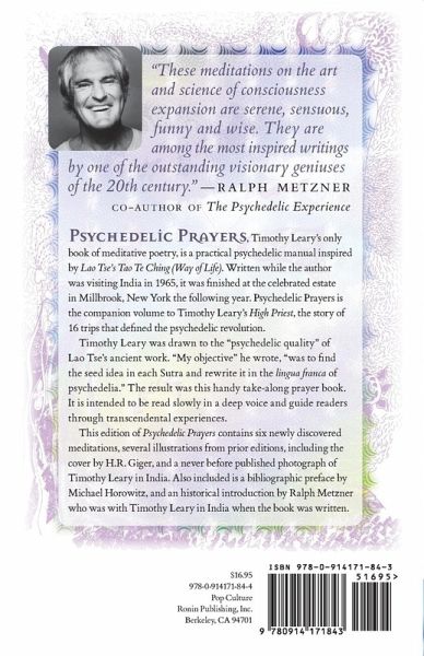 Written while Leary was visiting India in 1965 and finished the following year, "Psychedelic Prayers" is an adaptation of Book 1 of the "Tao Te Ching". With a new Introduction by Ralph Metzner, Leary's Harvard colleague, this book of poetry and meditations is being published in its first new edition in 25 years. Illustrations/photos.