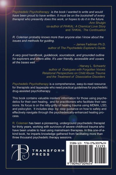For over thirty years, R. Coleman specialized in facilitating psychedelic drug-assisted psychotherapy sessions in Southern California. He specialized in working with survivors of severe childhood trauma who were resistant to, or disappointed with, mainstream therapy. The foundation of his work was built on twenty years of serious spiritual practice and extensive studies of psychotherapeutic principles. His passion for this cutting-edge modality came from personal experience using the drugs to heal his own extensive childhood wounds. When he began his psychedelic therapy in 1986, information about psychedelic therapy was sparse, and qualified, psychedelically informed therapists were almost impossible to find. Consequently, he spent years discovering what works and what does not-both for himself and for his patients. He wrote this book to share these discoveries.