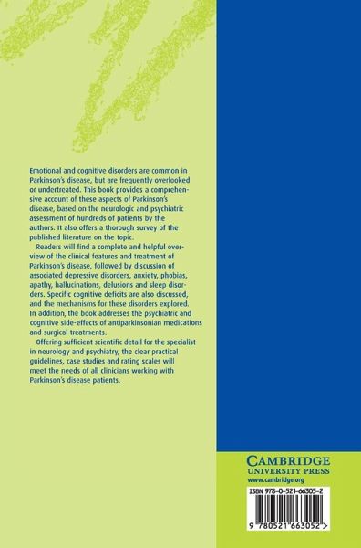 Emotional and cognitive disorders are common in Parkinson's disease, but are frequently overlooked or undertreated. This book provides a comprehensive account of these aspects of Parkinson's disease, based on the neurological and psychiatric assessment of hundreds of patients by the authors. It also offers a thorough survey of the published literature on the topic. Readers will find a complete and helpful overview of the clinical features and treatment of Parkinson's disease, followed by discussion of associated depressive disorders, anxiety, phobias, apathy, hallucinations, delusions and sleep disorders. Specific cognitive deficits are also discussed, and the mechanisms for these disorders explored. The book also addresses the psychiatric and cognitive side effects of anti-parkinsonian medications and new surgical treatments. Offering sufficient scientific detail for the specialist in neurology and psychiatry, the clear practical guidelines, case studies and rating scales will meet the needs of all clinicians working with Parkinson's disease patients.