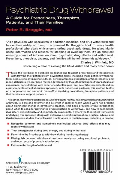As a physician who specializes in addiction medicine and drug withdrawal and written widely on them, I recommend Dr. Breggin's book to every health professional who deals with anyone taking psychiatric drugs. He gives highly useful information and reasons for stopping or avoiding them. It's an excellent one-stop source of information about psychiatric drug effects and withdrawal. Prescribers, therapists, patients, and families will benefit from this guidebook. Charles L. Whitfield, MD Bestselling author of Healing the Child Within and many other books Peter Breggin has more experience in safely withdrawing psychiatric patients from medication than any other psychiatrist. In this book he shares his lifetime of experience. All of our patients deserve the benefit of our obtaining that knowledge. Bertram Karon, PhD Professor of Psychology, Michigan State University Author, The Psychotherapy of Schizophrenia Former President of the Division of Psychoanalysis of the American Psychological Association This is such an important book. Describing the problem of withdrawal from psychiatric drugs in detail, and providing clear advice regarding how to deal with this problem as Peter has done so well in this book, is long overdue. For decades, the belief system that is mainstream psychiatry has denied the existence of withdrawal problems from the substances they prescribe so widely. In reality, withdrawal problems with psychiatric drugs is a common occurrence. Because of psychiatry's reckless denial of this real and common problem, millions of people worldwide have not had the support and care they desperately need when attempting to come off psychiatric drugs, often been erroneously advised that these problems are confirmation of the existence of their supposed original so-called 'psychiatric illness.' Dr. Breggin's book is therefore both timely and necessary." Terry Lynch, MD Physician and Psychotherapist Author of Beyond Prozac: Healing Mental Suffering Without Drugs and Selfhood: A Key to the Recovering of Emotional Well Being, Mental Health and the Prevention of Mental Health Problems Dr. Peter Breggin has written an invaluable reference for mental health professionals and lay-persons alike who are seeking a way out of dependency on psychiatric drugs. He describes the many dangers of psychiatric medication in straightforward research-based and contextually nuanced terms. Most helpfully, he articulates a method of empathic, person-centered psychotherapy as an alternative to the prevailing emotionally and system disengaged drug-centered approach. In this book, Dr. Breggin systematically outlines how to safely withdraw a patient from psychiatric medication with rich case examples drawn with the detail and sensitivity to individual and situational differences that reveal not only his extensive clinical experience, but his clear, knowledgeable, and compassionate vision of a more humane form of treatment. In this volume, Dr. Peter Breggin has again demonstrated that he is a model of what psychiatry can and should be. This is an indispensable text for both mental health trainees and experienced practitioners seeking a practical alternative to the dominant drug-centric paradigm. Gerald Porter, PhD Vice President for Academic Affairs School of Professional Psychology at Forest Institute This much needed book and guide to psychiatric medication withdrawal is clearly written and easy to understand. As people become more empowered and able to inform themselves about the effects of pharmaceuticals, practitioners will be called upon to wean their patients off of damaging medications. This book will provide that guidance. Thank you Dr. Breggin for having the courage to oppose conventional psychiatric thinking and the caring to improve the quality