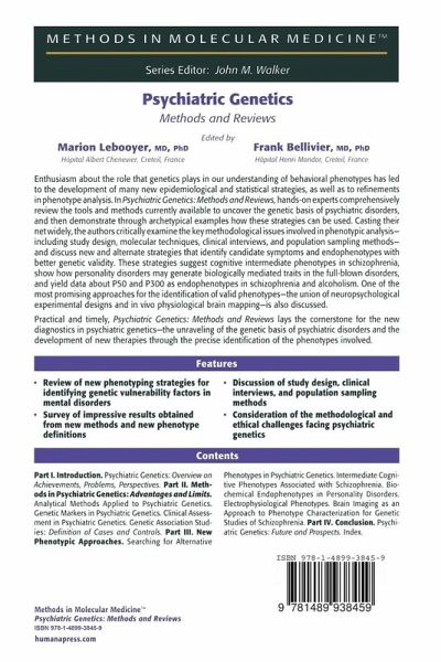 "Marion Leboyer and Frank Bellivier have put together a very good review of the variety of methods and approaches previously used in this complex area of research and, for this reason, this book provides a useful text for someone entering the field of psychiatric genetics." -Human Genetics