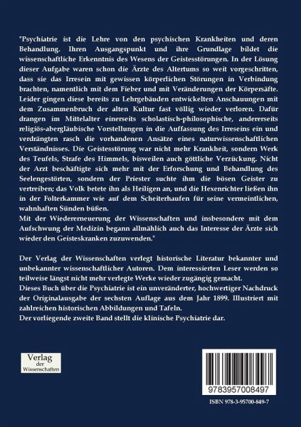 Der vorliegende zweite Band stellt die klinische Psychiatrie dar.