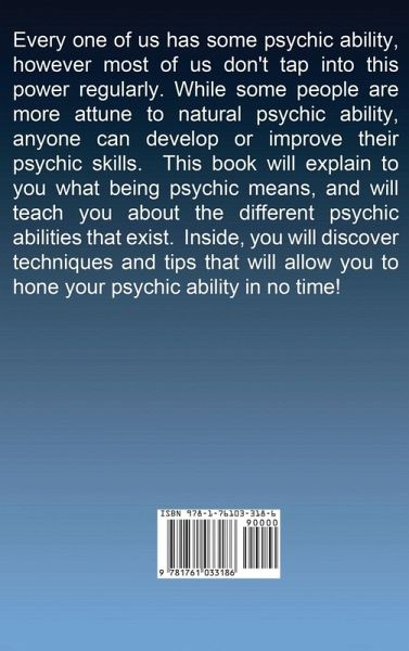 PSYCHIC DEVELOPMENT Every one of us has some psychic ability, however most of us don't tap into this power regularly. Have you ever thought of someone, and next thing you know they're calling you? Have you had a premonition, or felt that you had seen something happen before it actually happened? Maybe you have had an experience with a ghost, or other spirit? All of these are signs of psychic experiences, and it's capable for each and every one of us to experience these things. While some people are more attune to natural psychic ability, anyone can develop or improve their psychic skills. This book will explain to you what being psychic means, and will teach you about the different psychic abilities that exist. Inside, you will discover techniques and tips that will allow you to hone your psychic ability in no time! Whether you are a complete skeptic, or someone who has had psychic experiences before, this book will have something to offer you. Here Is What You'll Learn About... Why you're psychic Basic psychic tips How to develop basic psychic abilities How to hone your psychic sklls Types of psychic abilities Advanced psychic techniques Much, much more!