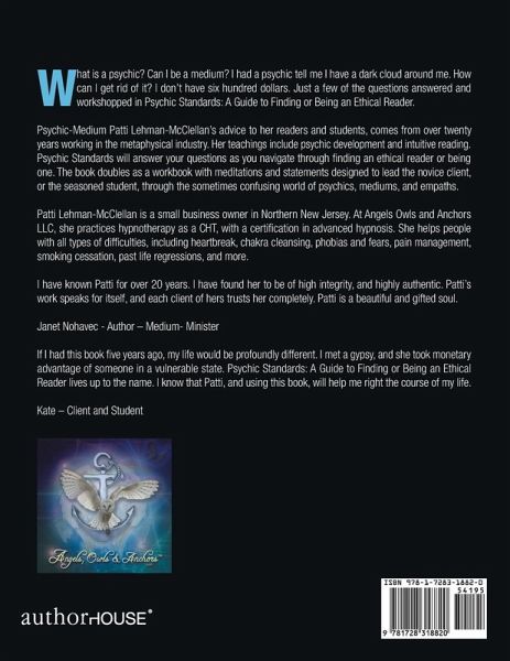What is a psychic? Can I be a medium? I had a psychic tell me I have a dark cloud around me. How can I get rid of it? I don't have six hundred dollars. These are just a few of the questions answered and workshopped in Psychic Standards: A Guide to Finding or Being an Ethical Reader. Psychic medium Patti Lehman-McClellan's advice to her readers and students comes from over twenty years working in the metaphysical industry. Her teachings include psychic development and intuitive reading. Psychic Standards will answer your questions as you navigate through finding an ethical reader or being one. The book doubles as a workbook with meditations and statements designed to lead the novice client or the seasoned student through the sometimes confusing world of psychics, mediums, and empaths. Patti Lehman-McClellan is a small business owner in Northern New Jersey. At Angels Owls and Anchors LLC, she practices hypnotherapy as a CHT, with a certification in advanced hypnosis. She helps people with all types of difficulties, including heartbreak, chakra cleansing, phobias and fears, pain management, smoking cessation, past life regressions, and more. "I have known Patti for over 20 years. I have found her to be of high integrity, and highly authentic. Patti's work speaks for itself, and each client of hers trusts her completely. Patti is a beautiful and gifted soul" (Janet Nohavec, author, medium, and minister). "If I had this book five years ago, my life would be profoundly different. I met a gypsy, and she took monetary advantage of someone in a vulnerable state. Psychic Standards: A Guide to Finding or Being an Ethical Reader lives up to the name. I know that Patti, and using this book, will help me right the course of my life" (Kate, client and student).