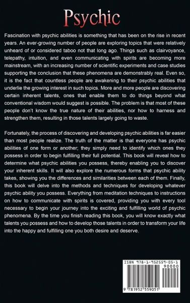 Countless people all across the world have had experiences they cannot explain; experiences that come from the spirit realm and point to their inherent psychic abilities. In addition, most everyone has at least one psychic talent waiting to be discovered and used, but only a small number ever fulfill their true psychic potential. If you are one of those who have had experiences you cannot explain and want to delve deeper into the world of psychic phenomena then Psychic: A Psychic Development Guide for Tapping into Your Ability for Telepathy, Mediumship, Intuition, Aura Reading, Clairvoyance, Healing and Communicating with Your Spirit Guides is the perfect book for you. Not only will this book reveal the nature of the many different psychic abilities that exist, but it will also help you to identify which ones you already possess. This will help you to understand the feelings and experiences that conventional wisdom cannot explain. Furthermore, by reading this, you will learn how to tap into your natural psychic abilities by following simple yet effective exercises that will strengthen your skills. Some of the many topics covered in this groundbreaking book include:The true nature of psychic abilities and phenomena How to develop your sense of intuition Recognizing and strengthening clairvoyance, claircognizance, clairsentience, clairaudience, and clairgustance How to become a psychic healer Mediumship and how to channel departed spirits How to read auras and determine their meaning Understanding the role of chakras in psychic health and wellbeing Discovering and developing your skills at telepathy Discovering and developing your psychometric abilities Learning how to meet and interact with spirit guides And much more... If you struggle to find meaning in your life, believing that there is more to this existence than your ordinary day-to-day routine, then this book is for you. Not only will it help to unlock your true potential, but it will also open up your heart and mind to a world of spiritual phenomena just waiting to be explored and enjoyed. In the end, the reason why you crave more out of life is that a part of you knows that so much more exists beyond physical reality. This book will help to teach you how to open your inner eye and ear to that bigger world, a world that transcends both time and space. By the time you finish reading Psychic: A Psychic Development Guide for Tapping into Your Ability for Telepathy, Mediumship, Intuition, Aura Reading, Clairvoyance, Healing and Communicating with Your Spirit Guides, you will have all the knowledge, insight, and tools you need to identify, develop, and use your inherent psychic abilities. This will enable you to transform your life into the meaningful, fulfilling one you both desire and deserve. So start your journey into the vast and wonderful world of psychic ability today!: