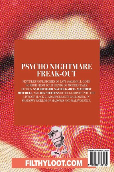 features four stories of late 1990s mall-goth horror from four fiends of modern dark fiction. Sam Richard, Xavier Garcia, Matthew Mitchell, and Jon Steffens offer glimpses into the lives of black-clad miscreants wallowing in shadowy worlds of madness and malevolence.