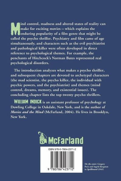 Mind control, madness and altered states of reality can make for exciting nights at the movies--which explains the enduring popularity of a film genre that might be called the psycho thriller. Psychiatry and film came of age simultaneously, and characters such as the evil psychiatrist and the pathological killer were often developed in direct reference to the psychological themes that inspired them. For example, the penchants of Hitchcock's famously creepy Norman Bates represented real psychological disorders, and his actions were explained through psychoanalysis. The psycho thriller presents a world where psychology represents a dimension of supernatural and metaphysical wonders. The introduction analyzes what makes a psycho thriller, and subsequent chapters are devoted to each of the archetypal psycho thriller characters (the mad scientist, the psycho killer, the individual with psychic powers, and the psychiatrist) and themes (mind control, dreams, memory, and existential issues). The concluding chapter lists the top twenty psycho thrillers. Stills from classic films in the genre illustrate the text, which also includes filmography, bibliography, and index.